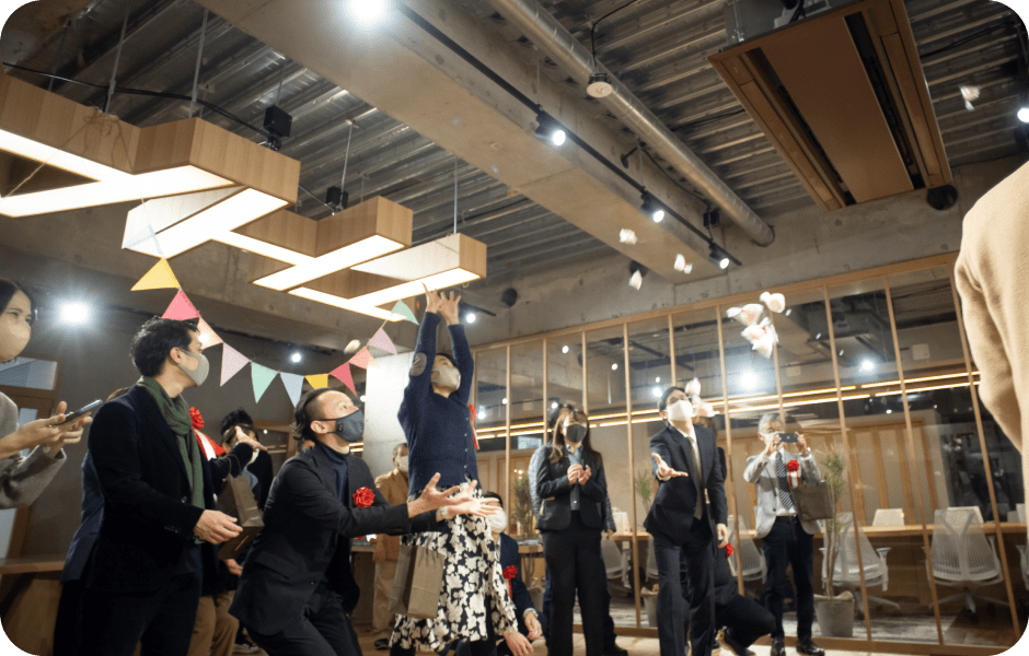 オフィスには広いレクリエーションエリアを設けています。業務中のコミュニケーションの場として機能している他、業務時間外にも同期会や女子会、料理上手な会長が若手社員に夕食を振舞うなど、さまざまな絆づくりが行われています。