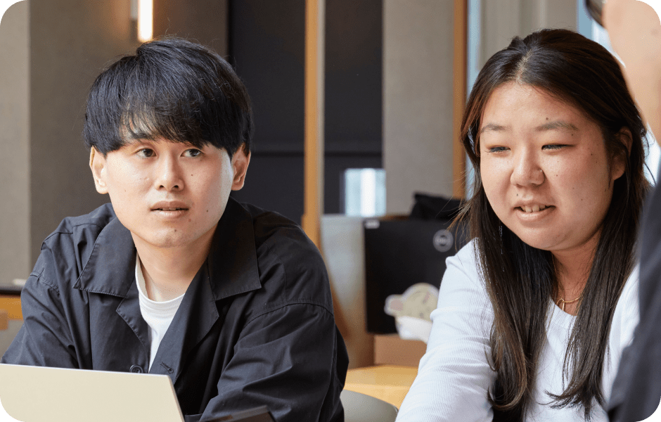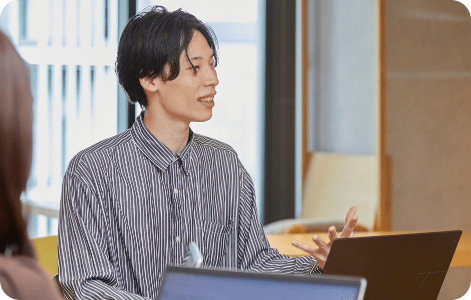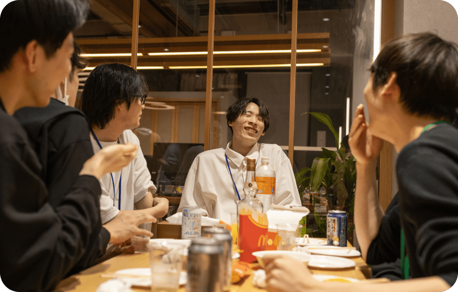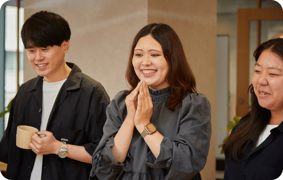 部門間を行き来できる柔軟なチーム編成を採用しており、偏りのないスキル修得を支援しています。